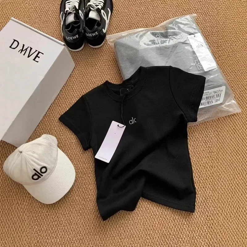 ALO 2025 new slim round neck solid color printed versatile T-shirt (4 styles)-2576