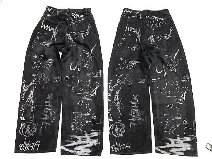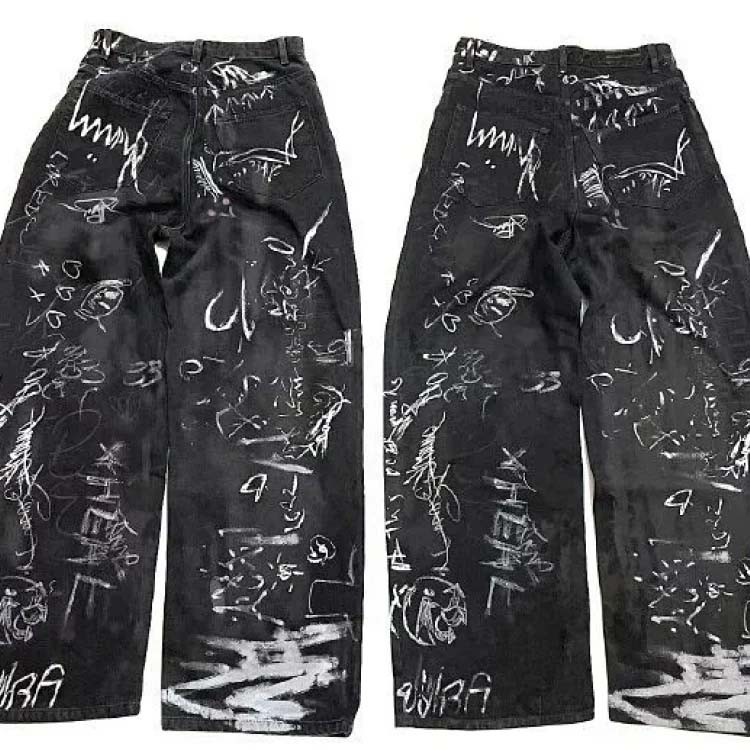 Home > Balenciaga Parisian style hand-painted graffiti washed couple casual denim trousers-2449