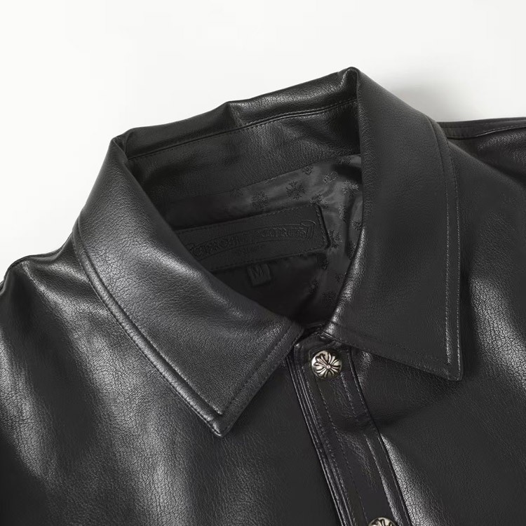 Chrome Hearts CH New Style Leather Jacket with Large Embroidered Arms-5009