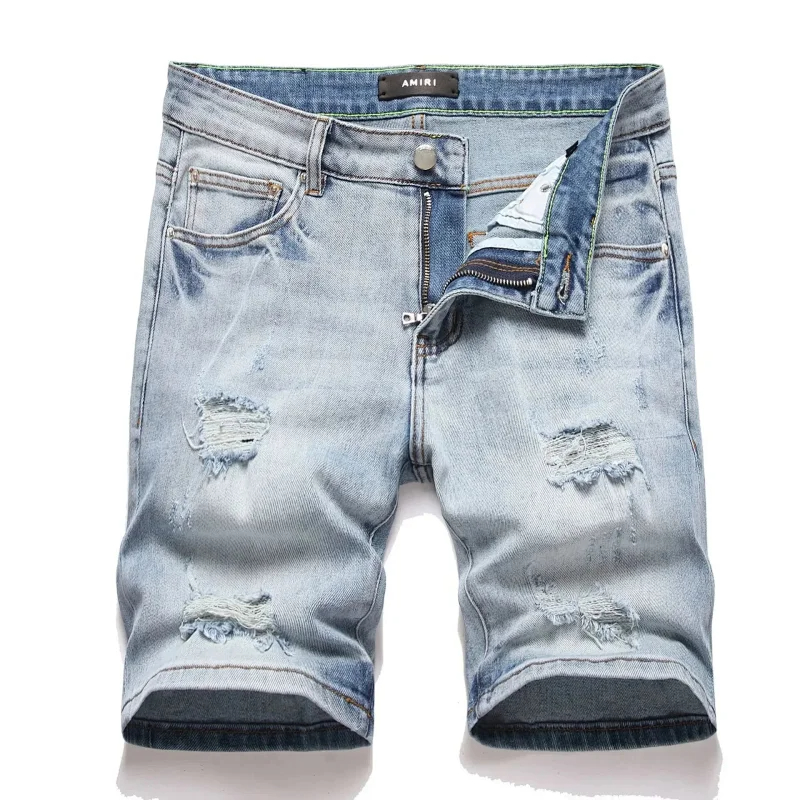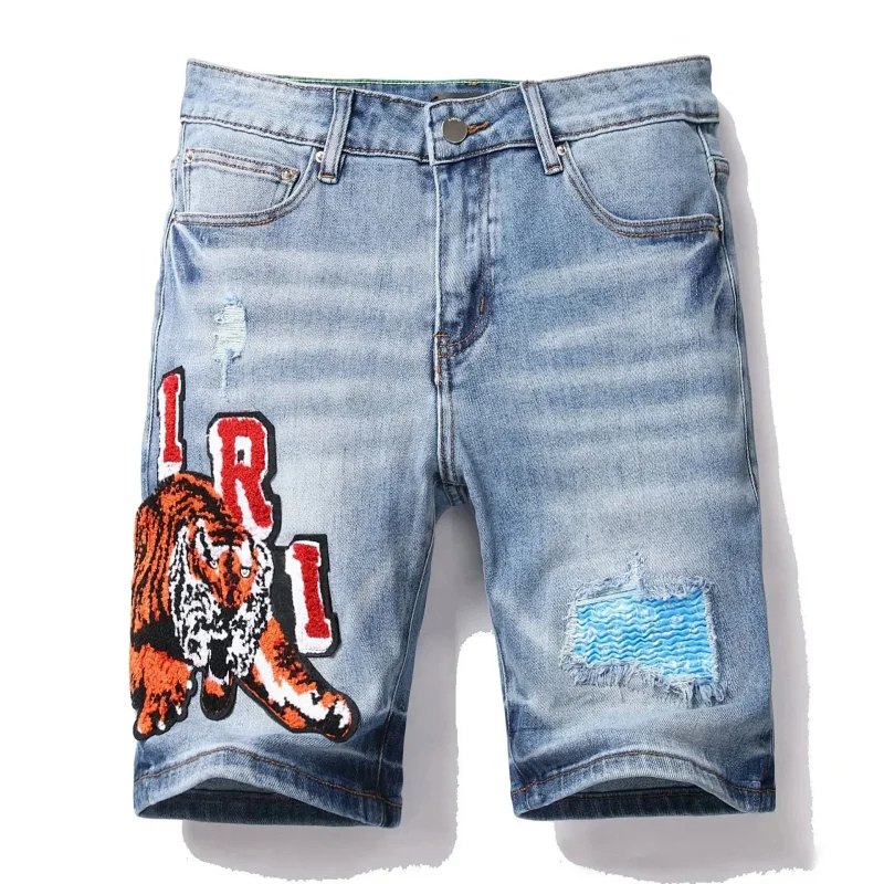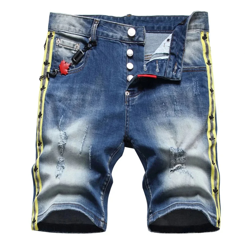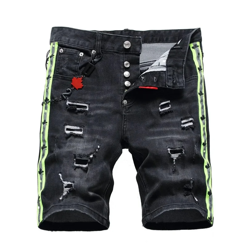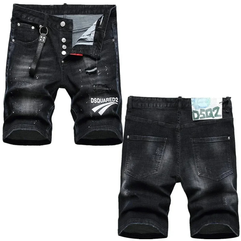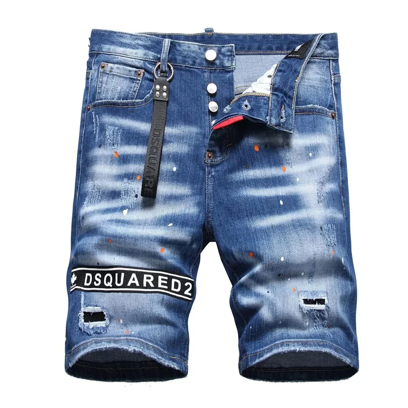 Dsquared2 Washed light-colored slightly stretched letter pattern five-point jeans-2496