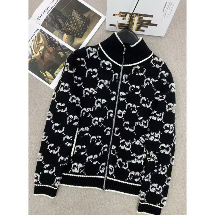 Gucci lettering full zipper stand collar long-sleeved sweater-4307