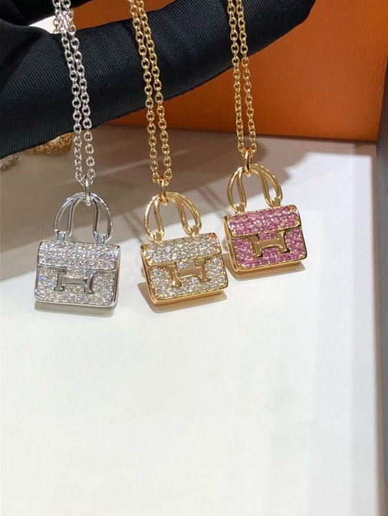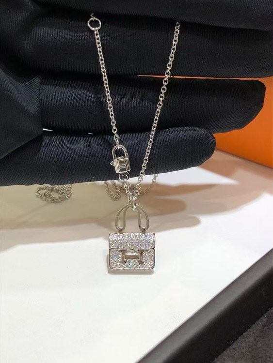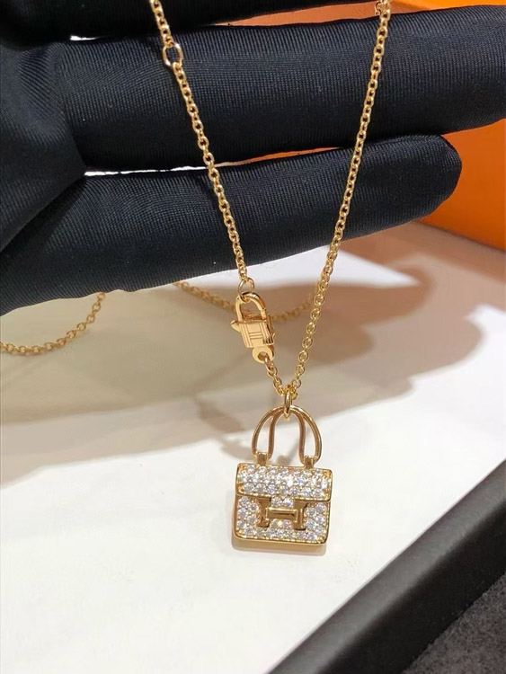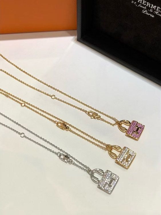 Home > Hermes padlock diamond rose gold pendant chain necklace-3837