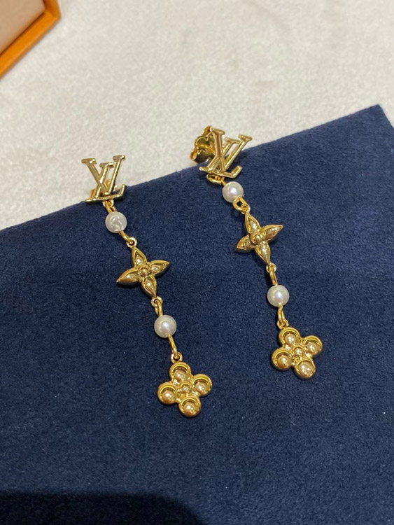 Louis Vuitton LV letter pearl four-leaf clover long earrings-3832
