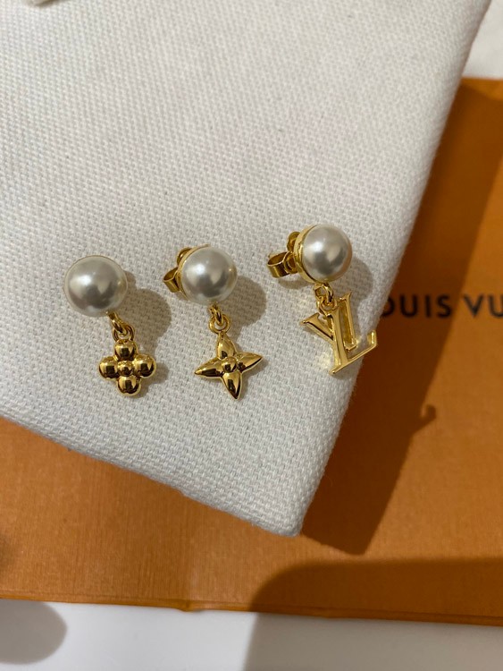 Louis Vuitton LV three-piece earrings with pearl letters-3608