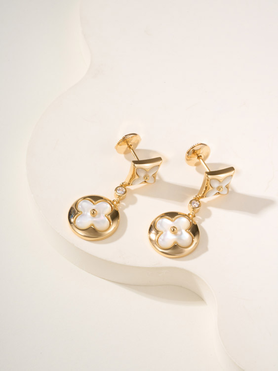 Louis Vuitton LV white mother-of-pearl earrings-3780