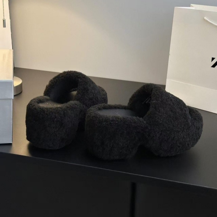 SMFK Non-slip Platform Wedge Velvet Slippers-5696