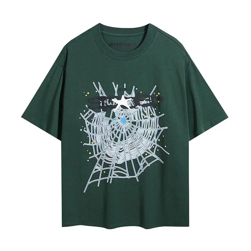 SP5DER Spider Web Foam Print Loose Casual Top T-Shirt-1861