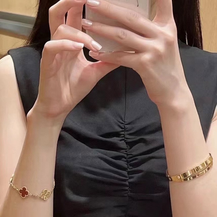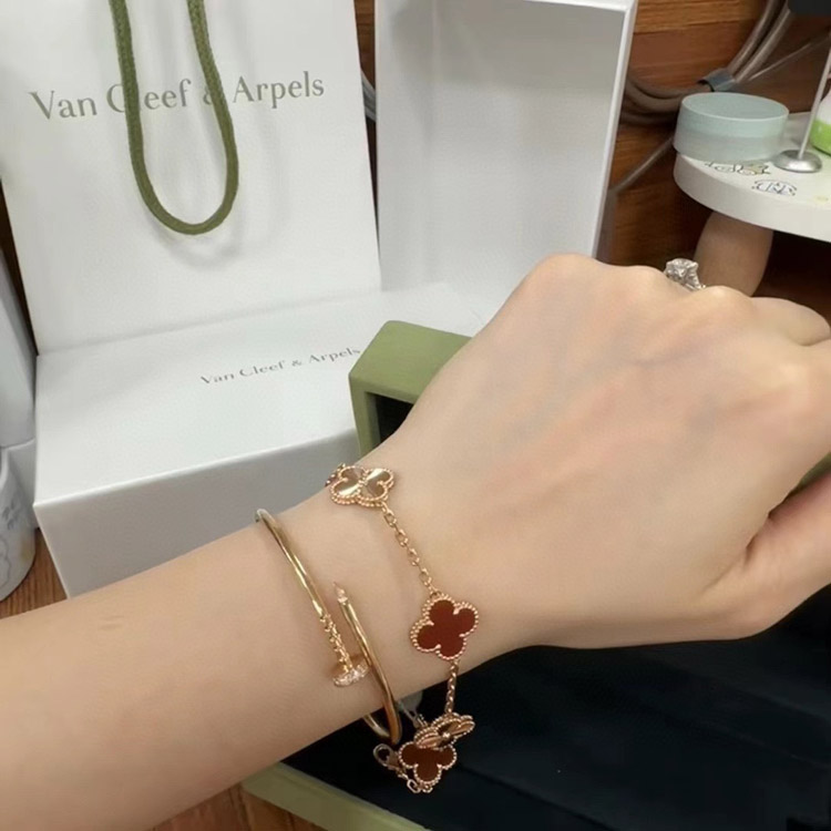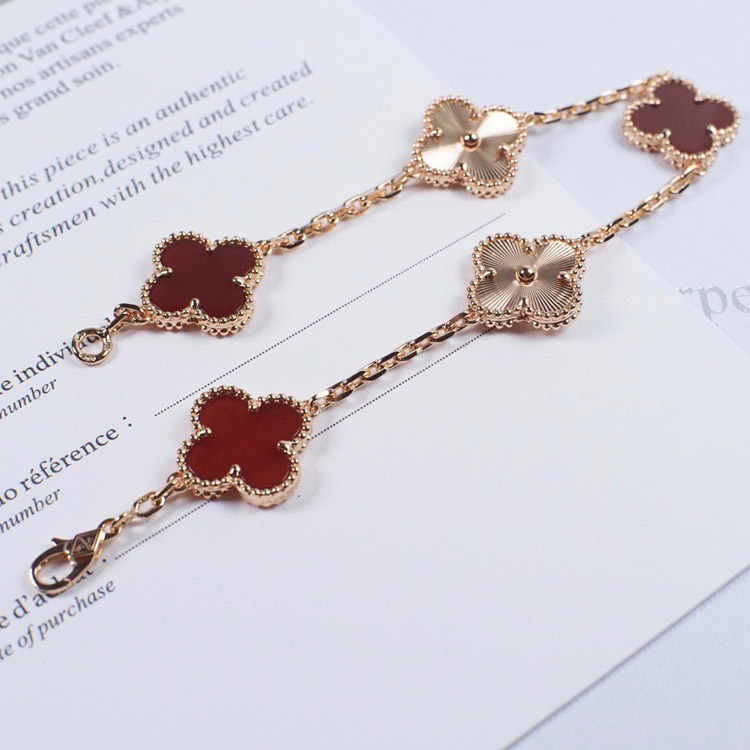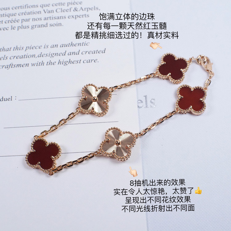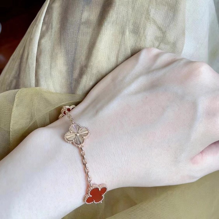 Van Cleef & Arpels Red Agate Laser Flower Bracelet-3690