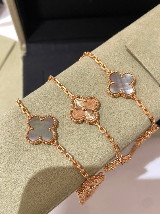 Van Cleef & Arpels rose gold gray mother-of-pearl laser five-flower bracelet-3688