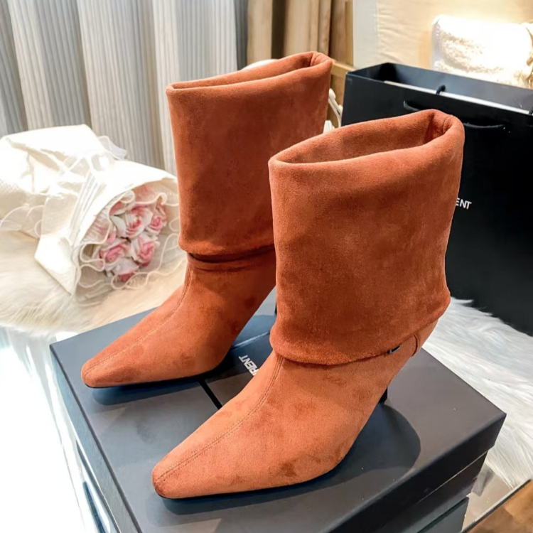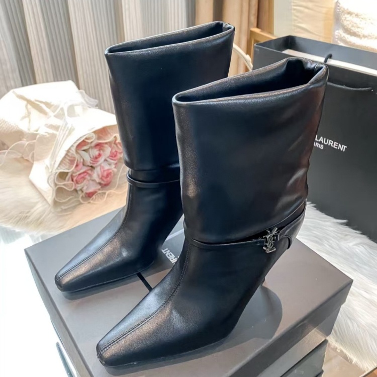 Yves Saint Laurent YSL new style stiletto heel fold-over mid-calf boots-5727